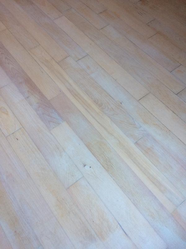 A smooth floor helps the paint stick so use a floor sander and 120 grit sandpaper to sand your wood.